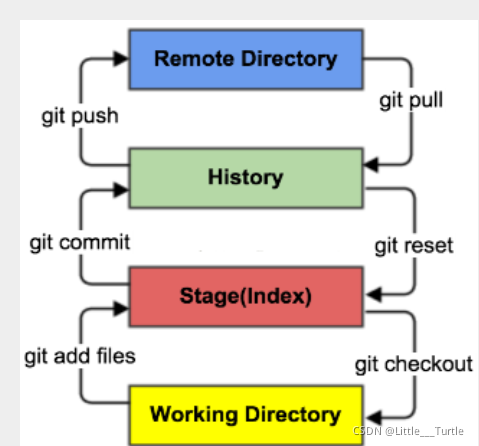 Git本地有三个工作区域:工作目录(Working Directory)、暂存区(Stage/Index)、资源库(Repository或Git Directory)。如果在加上远程的git仓库(Remote Directory)就可以分为四个工作区域。文件在这四个区域之间的转换关系如下: