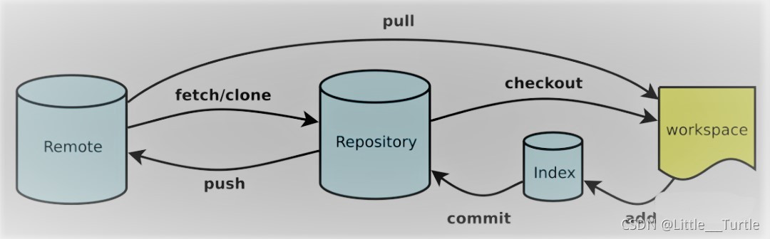 Remote:远程仓库,托管代码的服务器,可以简单的认为是你项目组中的一台电脑用于远程数据交换