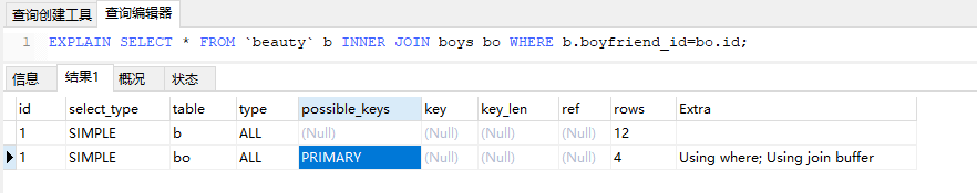 2.EXPLAIN解析语句