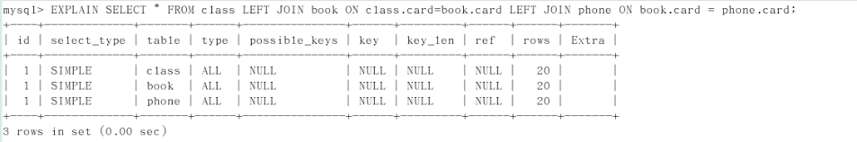 1.三张表全部是全表扫描,需要优化