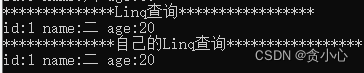 现在我们改变一下需求,用Linq的别的写法age < 30同时ID不等于0