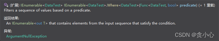 我们看到Where函数是 需要一个Func的参数 func的参数是我们的数据,返回值是一个bool