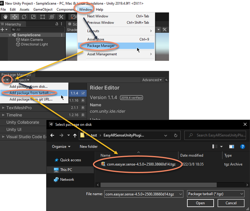 注意:在导入后, tgz 文件不能被删除或移动到另一个位置,因此通常需要在导入前将这个文件放在合适的地方。如果你希望与他人共享工程,可以将文件放在工程目录内,如果有使用版本管理,也需要加入。