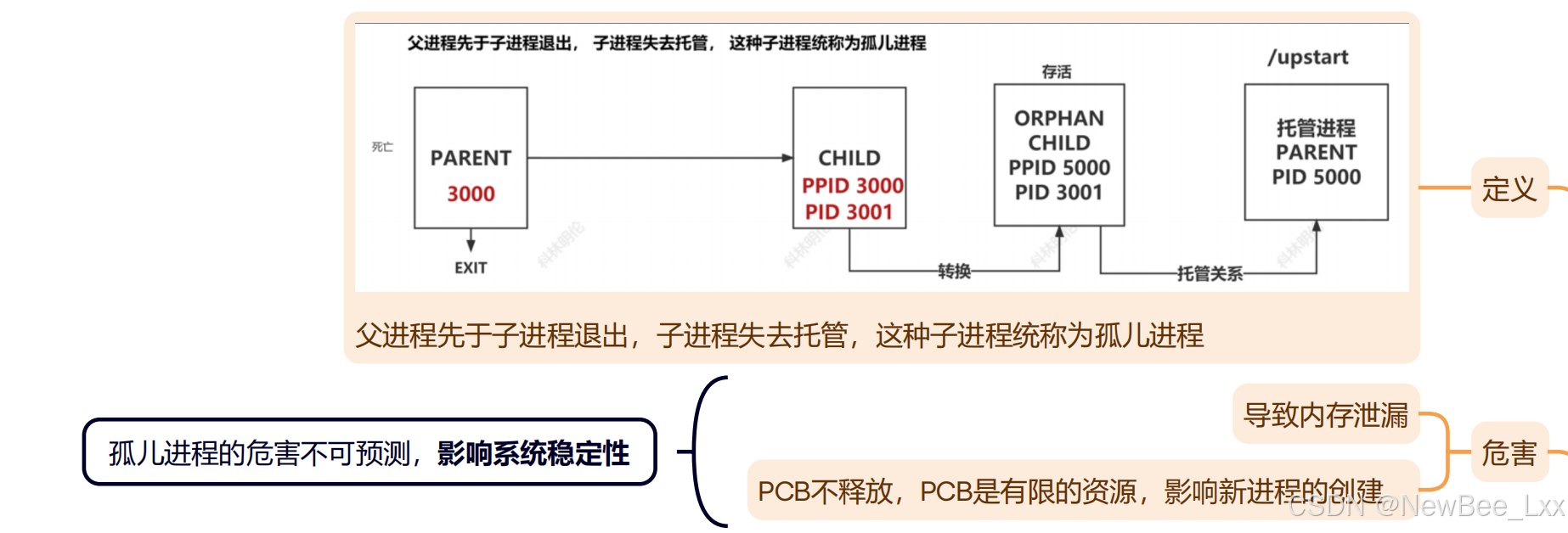 子进程退出后,资源没有释放完毕,PCB残留,这时的子进程称为僵尸进程,结果为内存泄漏