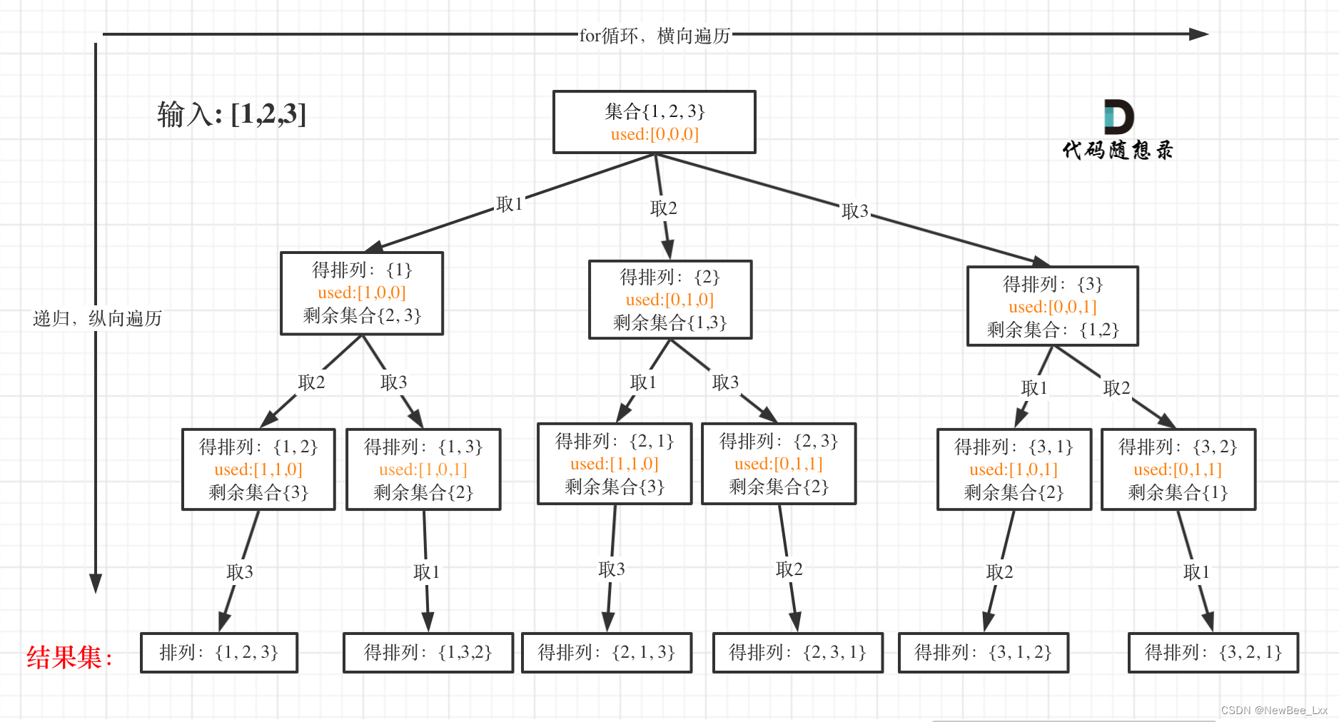 - 输出:[[1,2,3],[1,3,2],[2,1,3],[2,3,1],[3,1,2],[3,2,1]]