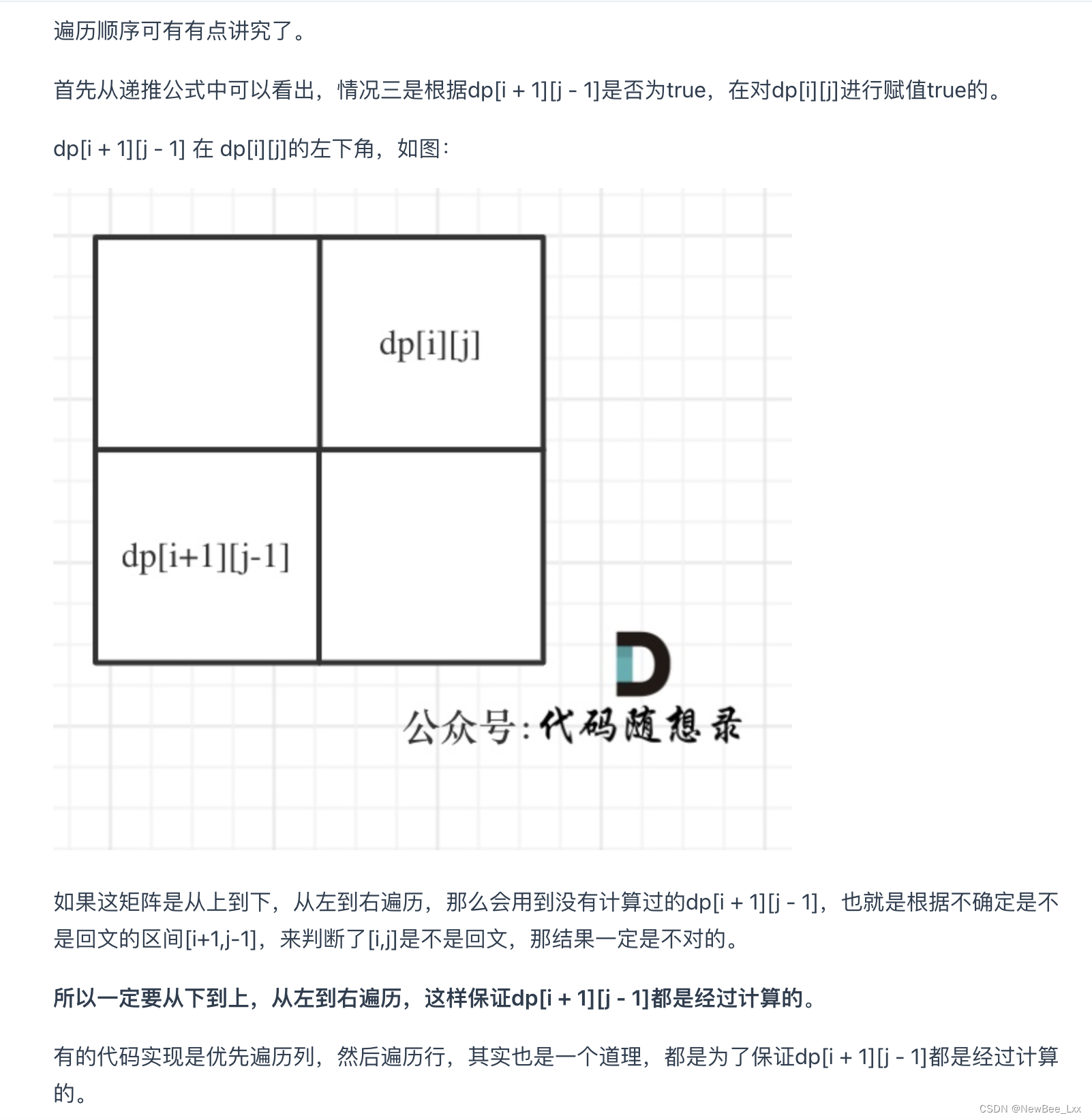 因为dp【i】【j】是通过dp【i+1】【j-1】推出来的