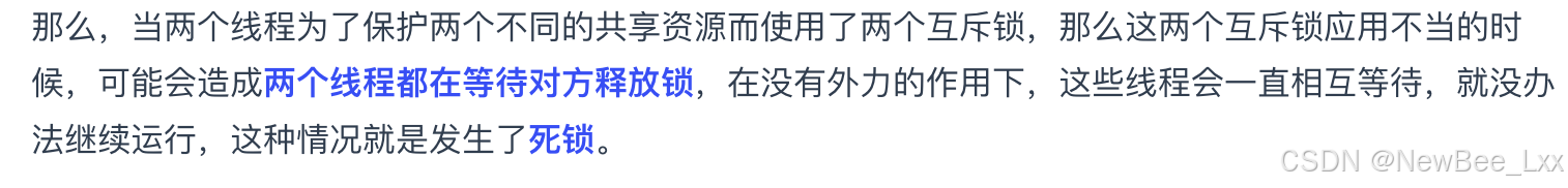 环路等待条件:线程1等待线程2占有的资源,而线程2等待线程1占有的资源形成一个环路