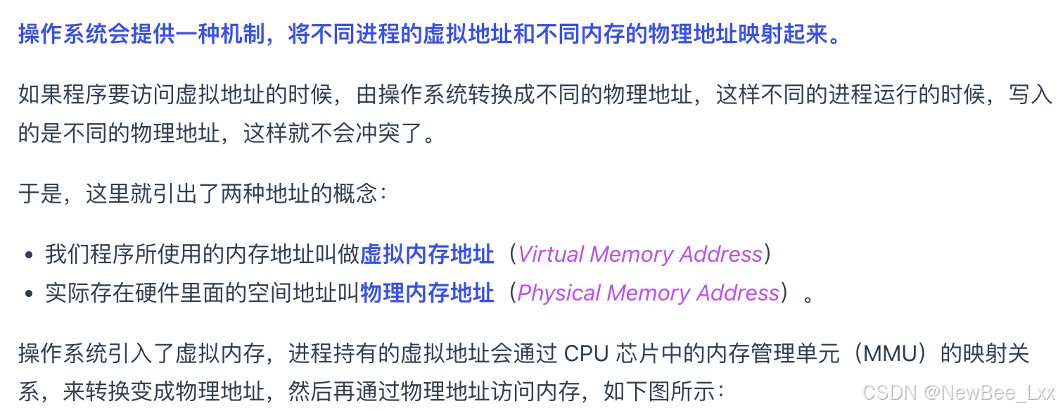 操作系统会提供一种机制,将不同进程的虚拟地址和不同内存的物理地址映射起来。