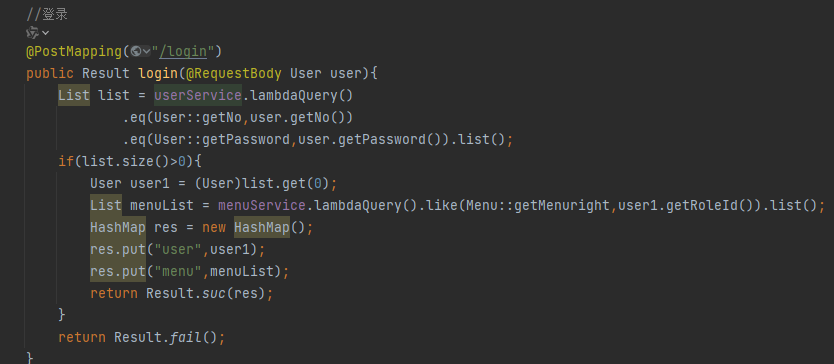 数据流向思路 首先前端输入账号和密码 后端判断 判断后会返回你的用户信息以及根据你的roid判断你的身份 然后给你对应的渲染菜单权限