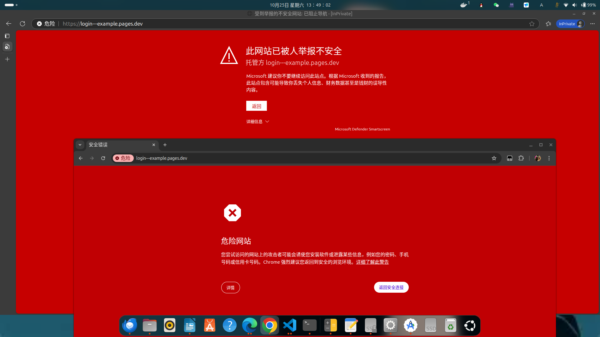 在23号,Microsoft Edge 与 Google Chrome访问网站时。显示了额外的弹窗,如下图: