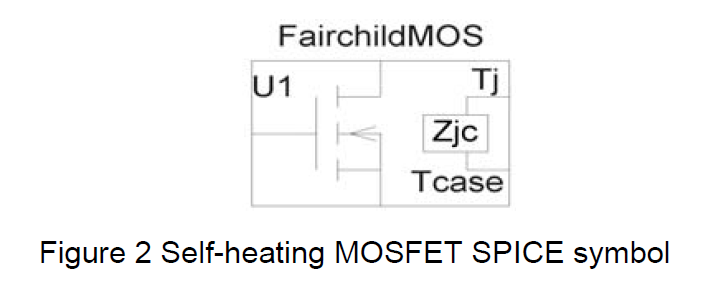 自热MOSFET模型的符号表示示例如图2所示。建议的符号实现是将Tj的引脚属性指定为可选(ERC=不在乎,Float=UniqueNet)。Tj是器件PN结温度的表示。它可以用作监测点,也可以连接到定义的电压源以覆盖自热功能。Tcase必须连接到散热器模型。模型的栅极、漏极和源极端子的连接处理与标准MOSFET模型没有区别。