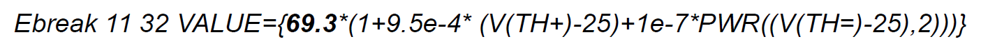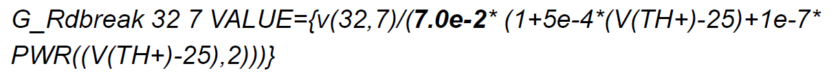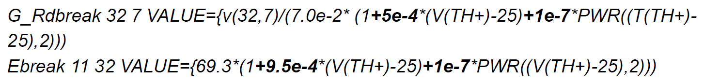击穿电压:低电流击穿用Ebreak的热参数建模。G_Rdbreak的热参数用于模拟大电流。
