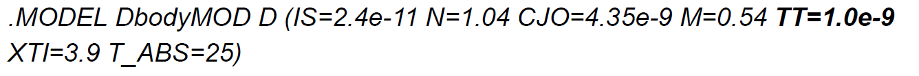 高电流区域在线性尺度上建模。G_Rdbody用于通过添加串联电阻来匹配大电流下的二极管曲线数据,从而降低曲线。