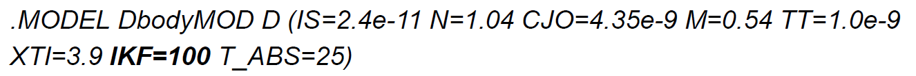 IKF可用于平滑低电流和高电流之间的过渡区域。更换IKF后,通常需要重新调整G_Rbody。