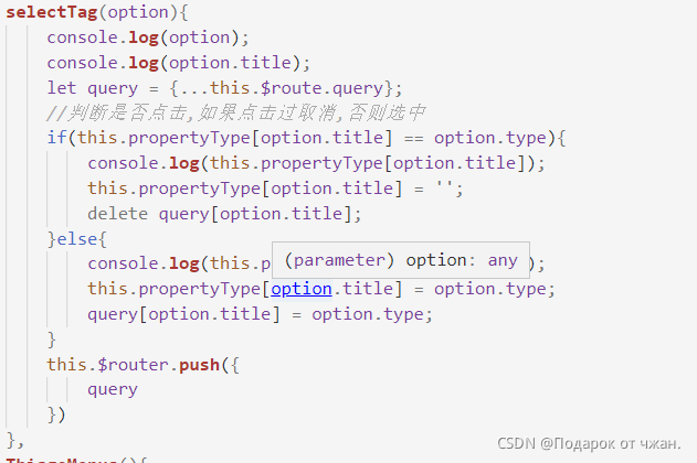 下边的代码是筛选部分判断是否点击,如果点击过取消,否则选中
