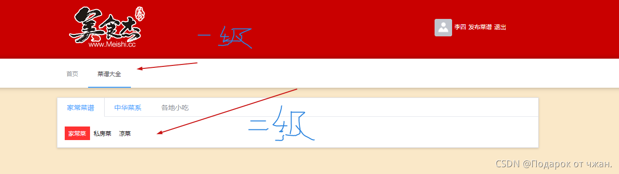 左侧是筛选部分,用来进行菜品详细分类