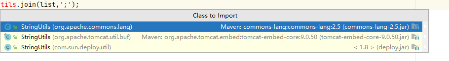 使用StringUtils.join()方法需要引用org.apache.commons.lang里的jar包,我的是springboot项目,maven中自动引入了。