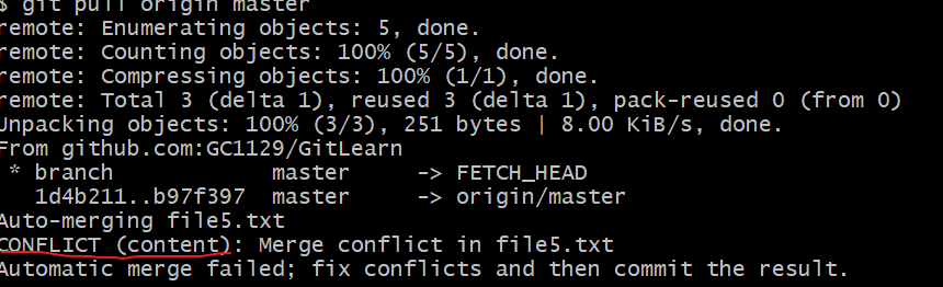 需要对指明文件进行处理,选择最终推送内容,即进行合并之后,才能推送回远程仓库。