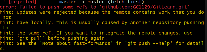 因为远程仓库(GitHub 上)的 master 分支有你本地仓库没有的提交记录,Git 为了防止覆盖远程的这些更改,拒绝了你的推送。