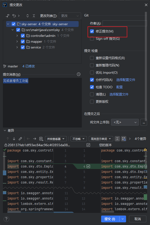 比如当你提交之后发现代码还有问题,想要修改上次的提交的话,那么如图所示
