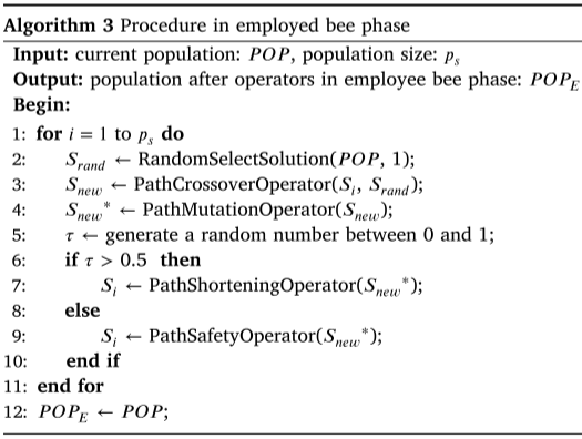雇佣蜂阶段对种群中的所有解进行开发操作,本文开发了四种路径操作算子:路径交叉、路径变异、路径缩短和路径安全,用来增强EABC算法的开发能力。