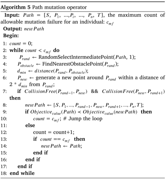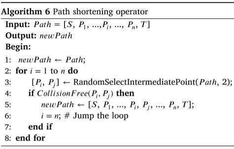 路径缩短算子旨在减少路径长度。由于路径上的中间点数量可变,删除冗余点是减少路径长度的一种有效方法。