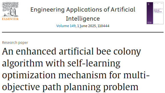 [1] Ye F, Duan P, Meng L, et al. An enhanced artificial bee colony algorithm with self-learning optimization mechanism for multi-objective path planning problem[J]. Engineering Applications of Artificial Intelligence, 2025, 149: 110444.