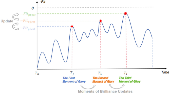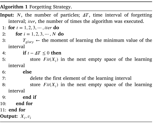 为解决粒子在进化中因过度依赖历史最优,自适应区间遗忘机制使粒子在一定时间段内只保留近期的最优经验,并主动遗忘过时信息。当历史经验持续无法带来改进时,粒子将转向学习近期适应环境的新经验,从而实现对历史最优的动态更新。该机制通过主动与被动遗忘相结合,有效避免长期停滞,提升搜索能力并加快算法收敛。
