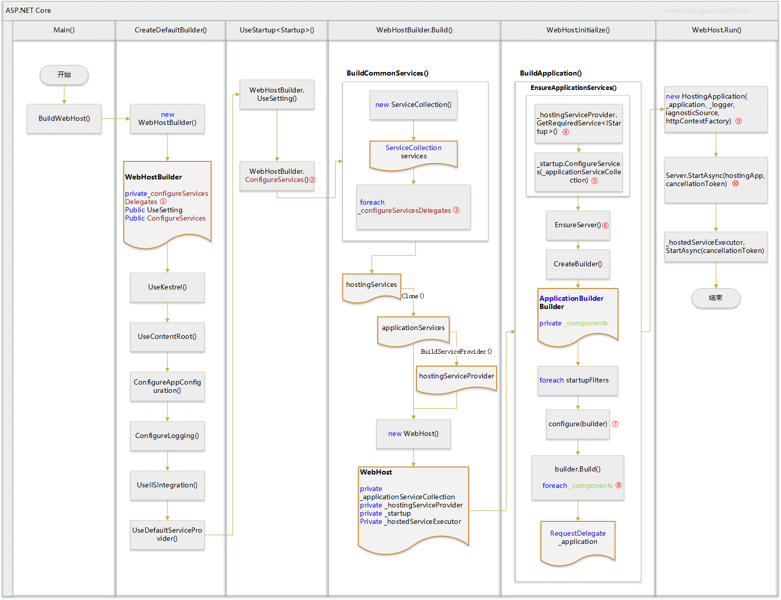 上一篇文章讲了ASP.NET Core中的依赖注入, 而它的配置是在Startup这个文件中的 ConfigureServices(IServiceCollection services) 方法,而且Startup这个类也没有继承任何类或者接口。 深入的想一想,可能会冒出类似上面列出的好多问题,下面用一幅图来看透它。