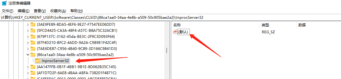 在HKEY_CURRENT_USER\SOFTWARE\CLASSES\CLSID下右键点击新建项“{86ca1aa0-34aa-4e8b-a509-50c905bae2a2}”,如下图: