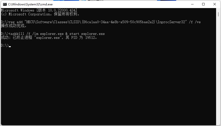 Windows+R键,输入cmd,打开命令窗口,输入如下命令,回车: