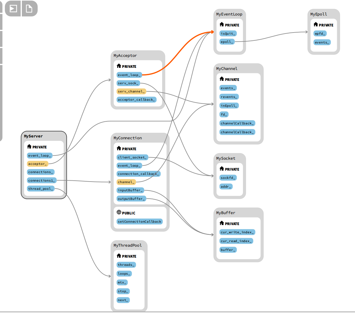 随着项目的不断推进,已经基本实现了一个基于reactor模型的高并发服务器的雏型,为了能够更好地完成接下来的内容,同时弥补之前的设计、细节缺陷,需要对核心类与代码进行梳理和重构。主要是使用智能指针对类资源进行管理,避免可能出现的内存泄漏等情况,提高服务器的基础效率。