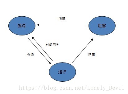 加上一个sleep(1),让她休眠一秒就好了。现在都是多任务操作系统了,电脑上不会只有这一个进程,cpu不是按时间片轮转来执行吗?就算是单核,cpu利用率也不应该是100%啊,为什么会这样呢?我们知道一个线程有三种状态: