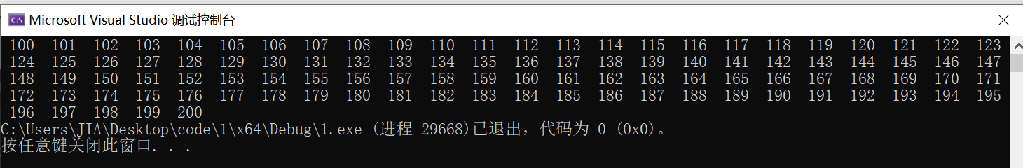 for (x = 100; x <= 200; x++) //通过循环一次输出100-200的数,作为被除数参与运算