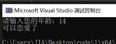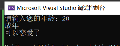 虽然经过判断没有成年,从而没有输出“成年”这个结果。但是“可以恋爱仍然作为结果输出”,此时就存在缺陷,因为代码中的if这时只能控制一条语句,下面我们就来看一下如何用if控制这两条语句