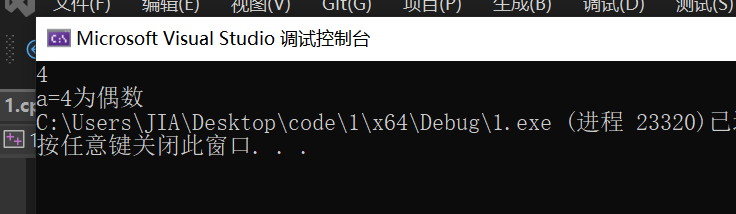 如果我们给a赋值为偶数,那么输出结果如果图所示