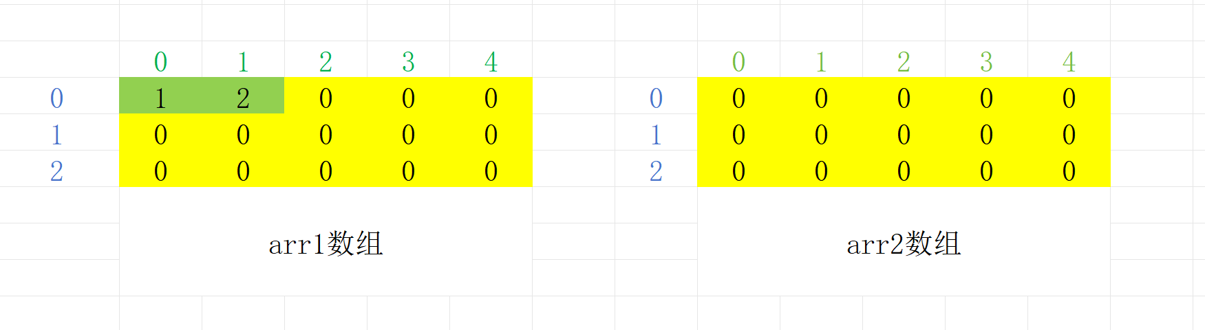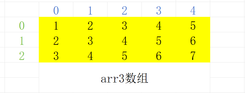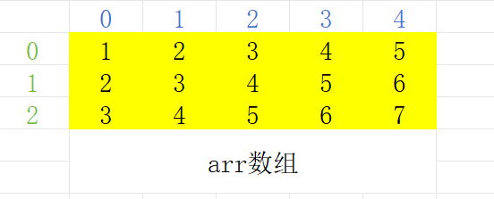 以上⼀段代码中的arr数组为例,行的选择范围是0~2,列的取值范围是0~4,所以我们可以借助循环实现生成所有的下标