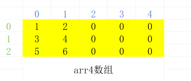 int arr4[3][5] = {{1,2},{3,4},{5,6}};