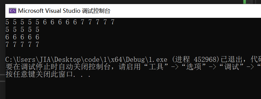 printf("%s\n", arr2);//最后一次输出会被清屏,可以再打印一遍输出