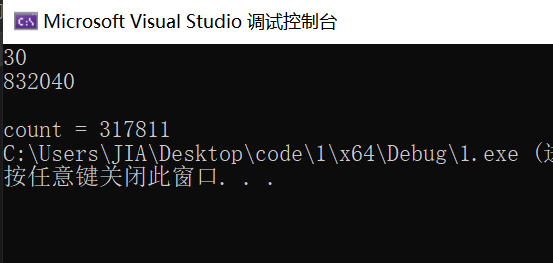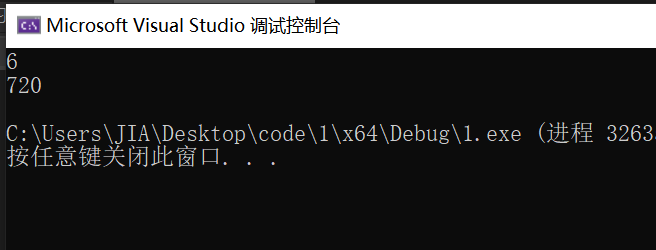 printf("%d\n", ret); //ret值被赋予调用fact函数运行后的结果