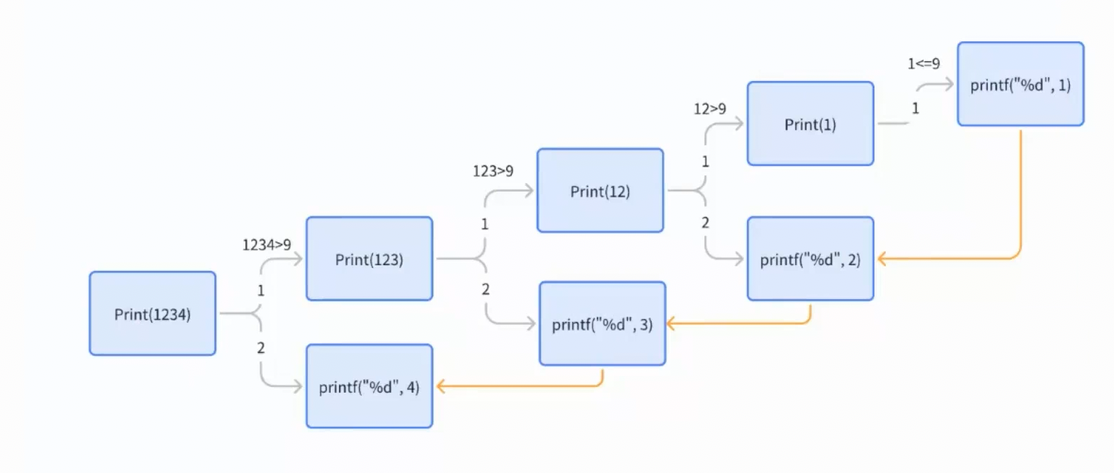 把Print(1234) 打印1234每⼀位,拆解为首先Print(123)打印123的每⼀位,再打印得到的4