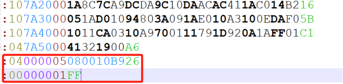 '01’文件结束记录:用来标识文件结束,放在文件的最后,标识HEX文件的结尾