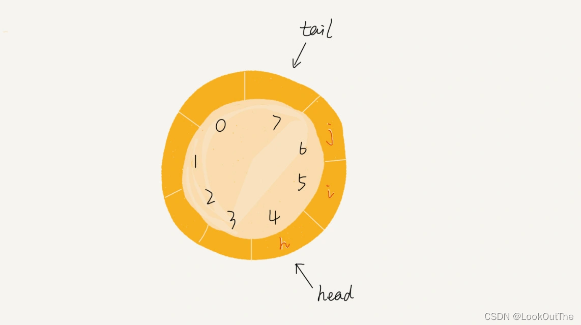 队列为空的条件仍然是tail == head。队列满的时候,有一个规律:(tail+1)%n = head。