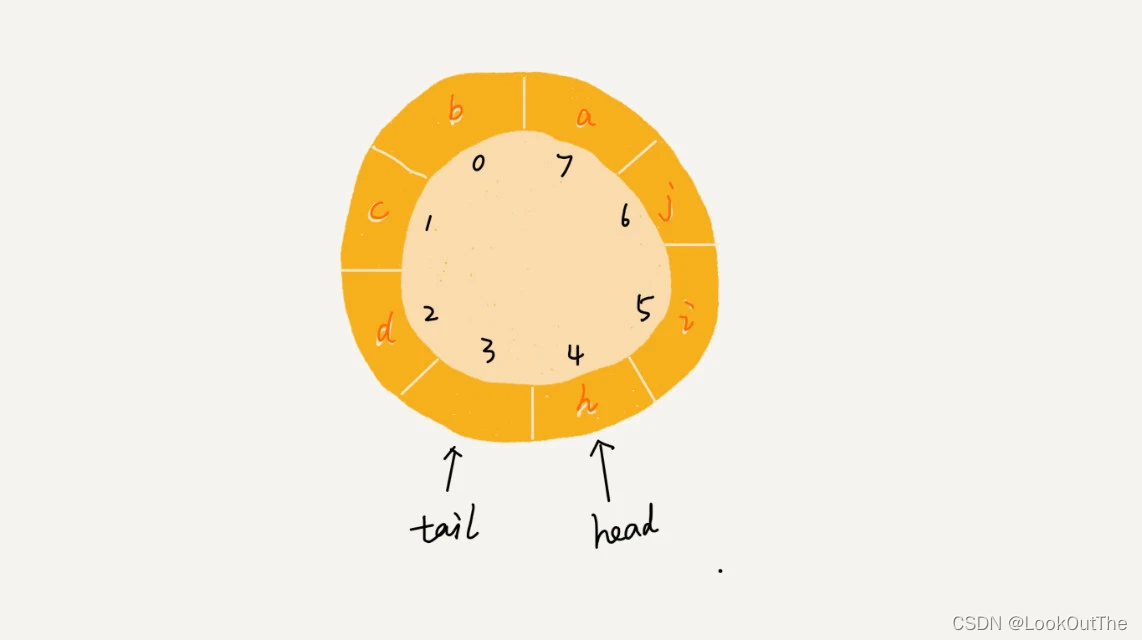 如图:原本数组是有头有尾的,如果我们能让tail到达7的时候,再有数据入队的时候,tail=0,那么就不需要数据的迁移,而能够继续插入数据了。