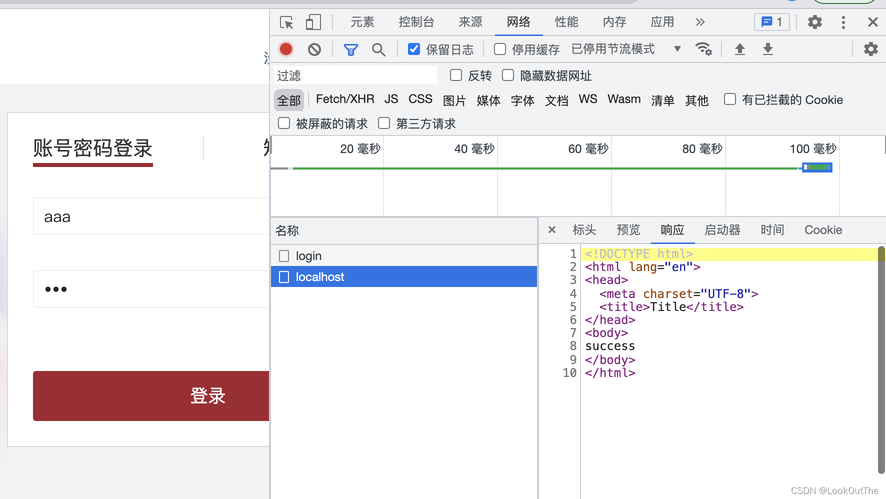 运行项目,再次登录后,ajax正常处理,跳转页面。