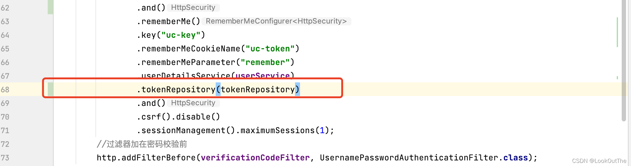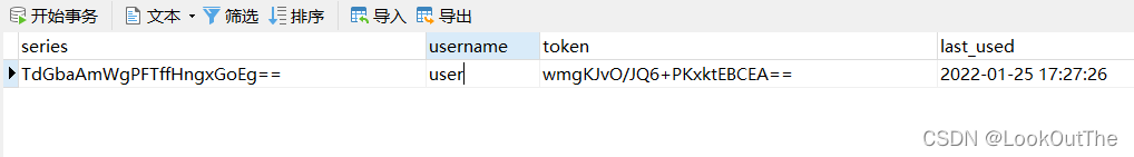 表的主键是series,Spring Security可以通过series查询表中的其他信息。有了存储自动登录信息的表 之后,就可以继续配置Spring Security的Remember-me功能了。由于需要使用持久化令牌方案,所以指定tokenRepository。