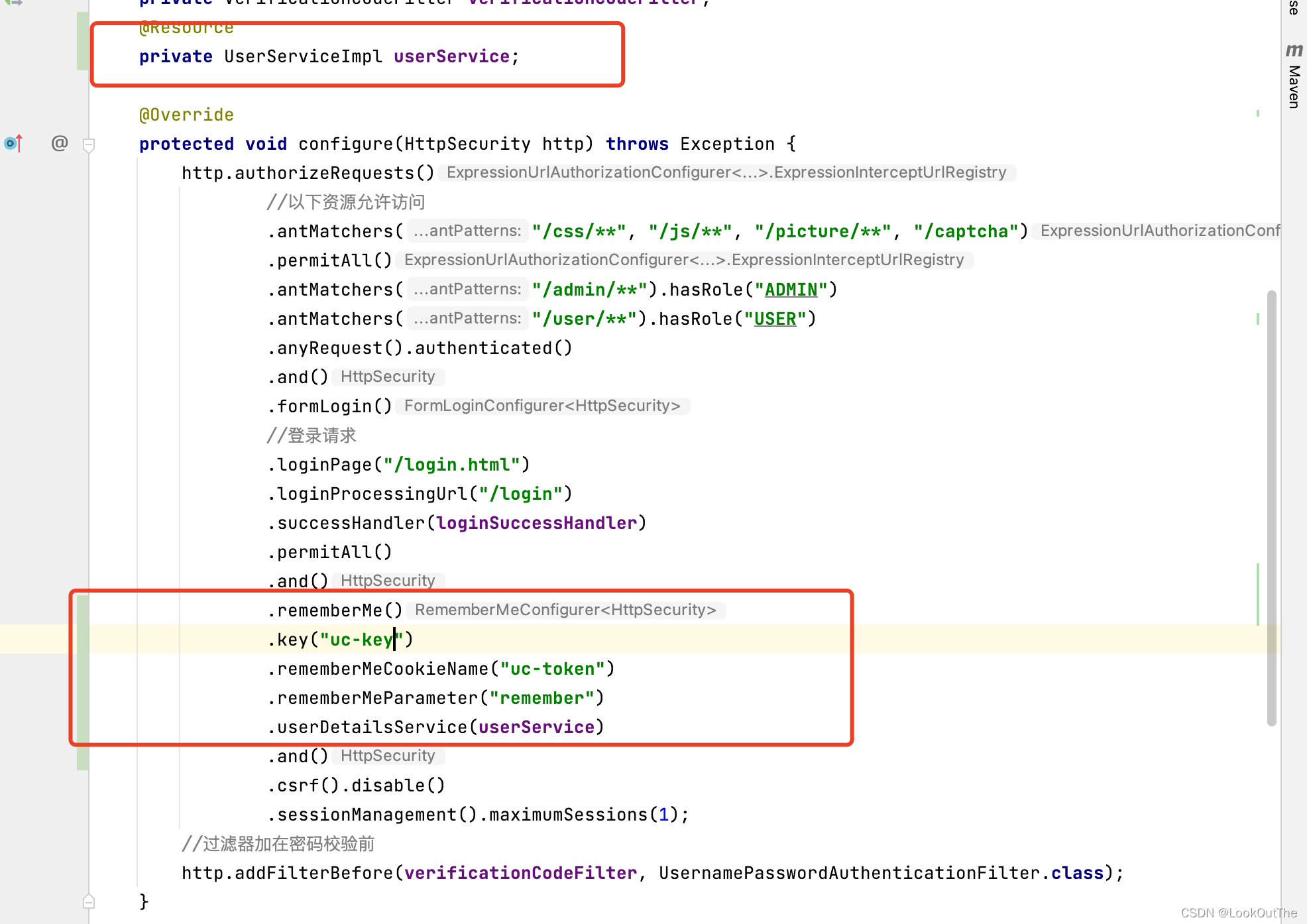3、key是一个散列盐值,没有指定的时候是一个随机的UUID字符串,这样每次启动服务,或者部署多台机器都会导致自动登录使用的cookie失效。所以直接指定一个固定的。