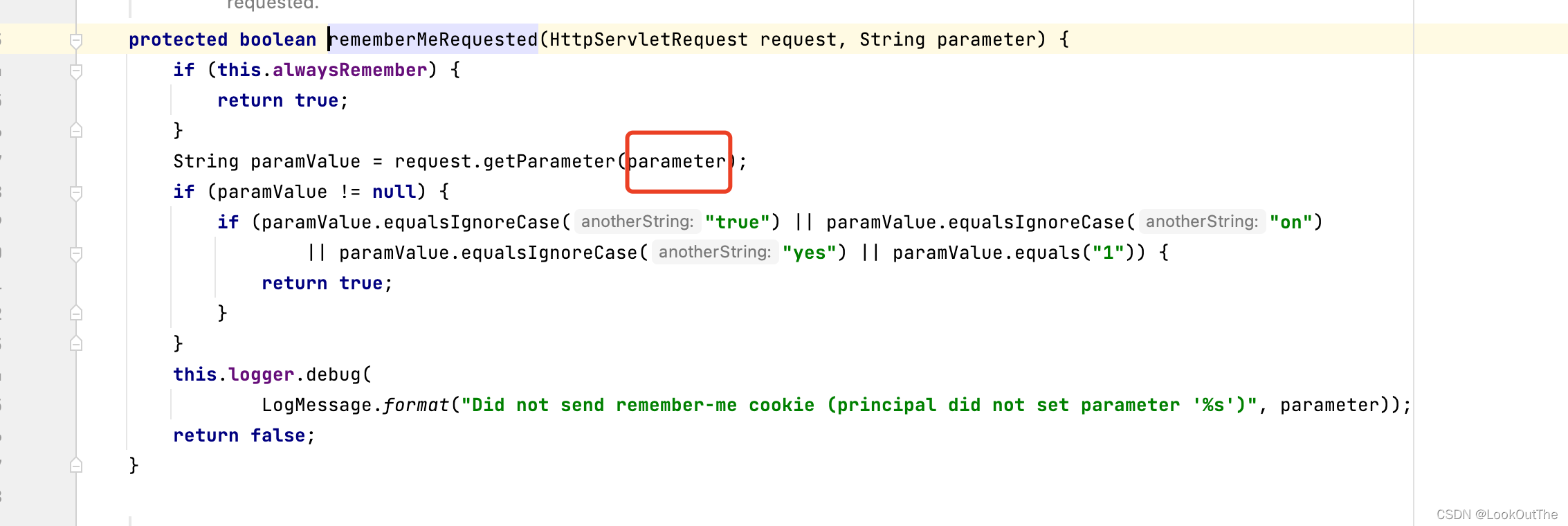 2、rememberMeParameter设置的是前端登录是传参的名字,如下图,SpringSecurity会使用这个名字取前端的参数