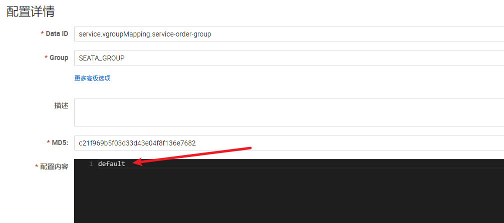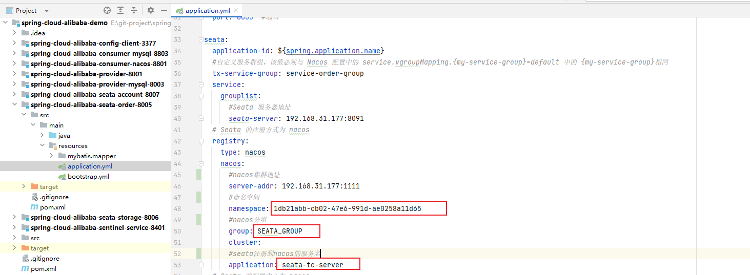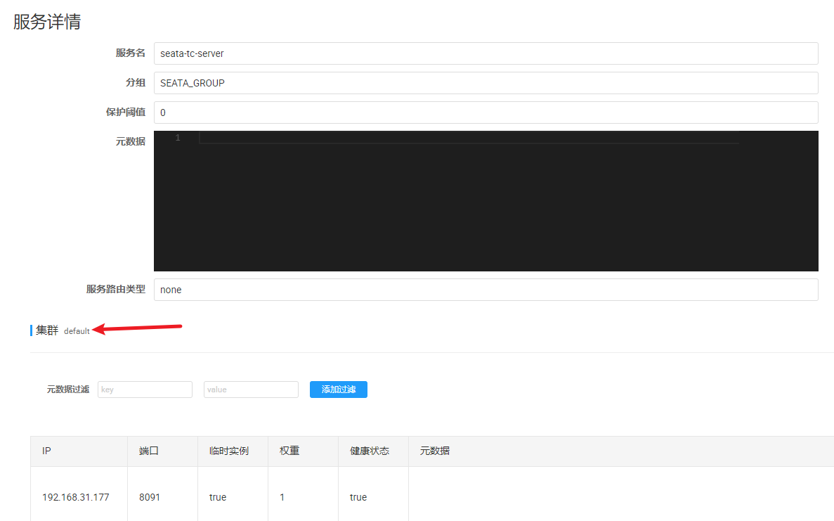 service.vgroupMapping.{your-service-group自定义的服务分组}=自定义的集群名称客户端服务中获取到的seata服务群组名称
