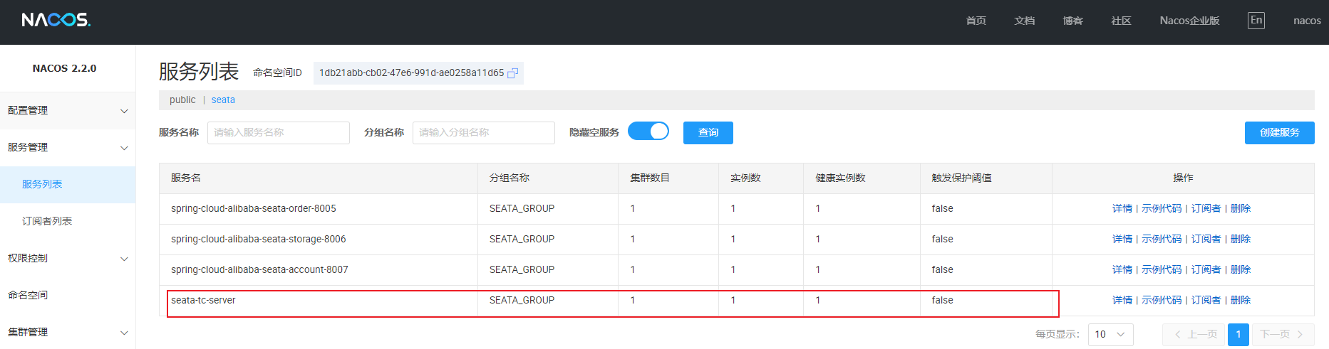检查seata-server服务是否能注册到nacos服务(此处笔者修改了默认的seata服务名)